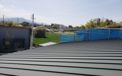 継ぎ目のないガルバリウム鋼板は見た目にもすっきとした印象。