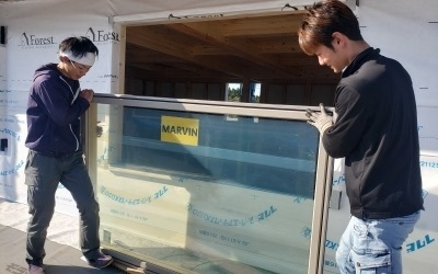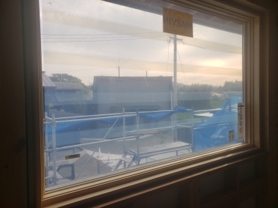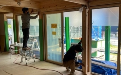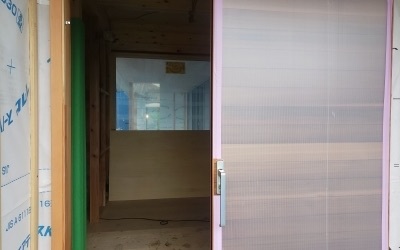 玄関の木製引き戸も入り、全ての建具が納まりました。