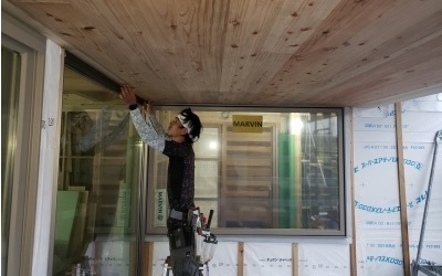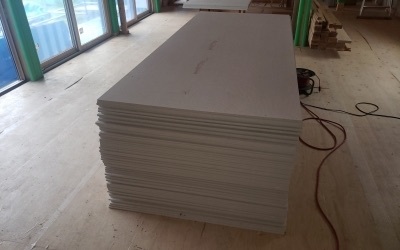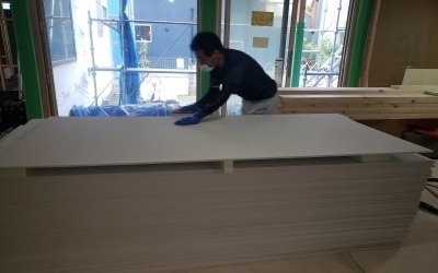 所定の位置へ慎重に運び込んで一枚ずつ丁寧に取付けを行います。