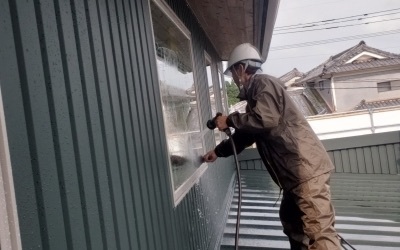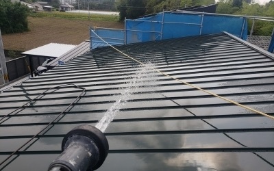 洗浄と同時に各部の納まりと防水処理の最終チェックもここでしっかりと。