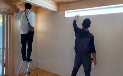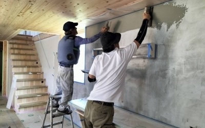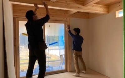 内壁の一部には塗り壁屋さんによる仕上げ工事も進みます!