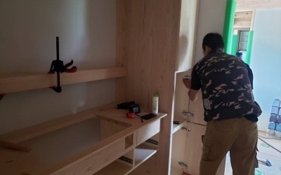 何度も打ち合わせを重ねた造作家具も取付けの段階へ。
