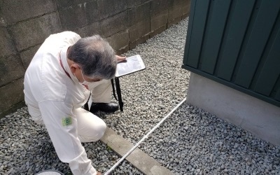 外部の防水状況・耐力面材の釘ピッチなど入念な確認が行われます。