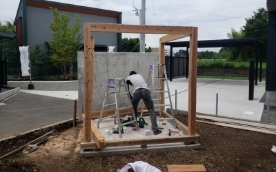 この一週間、気温は38度を超える日が連続して続いていますが、 チームフォレストの協力(強力)業者さんは、顔色ひとつ変えずに 私たちの次々と出てくるアイデアや変更を笑顔で引き受けてくれます。