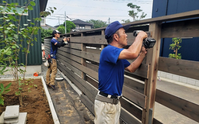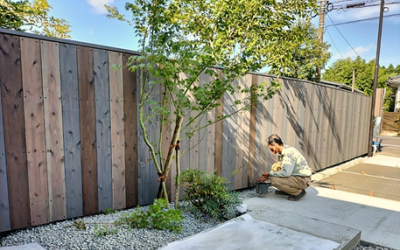 ウッドフェンスの塗装も、1枚1枚色を変えてワクワク感を微調整。