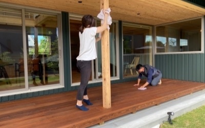 建て方工事後、定期的にスタッフが集まり行われる磨きの日。