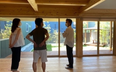 完成したお家を眺めながら、設備機器等のご説明が始まります。