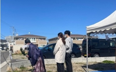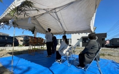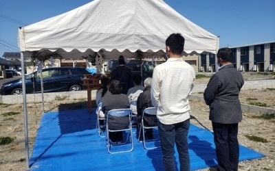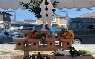 着工前に地鎮祭を執り行い、工事の安全を祈願します。