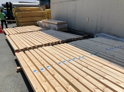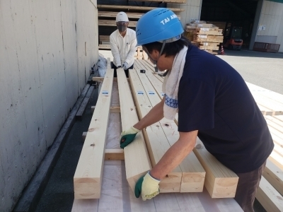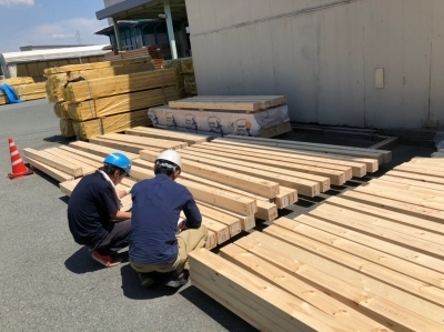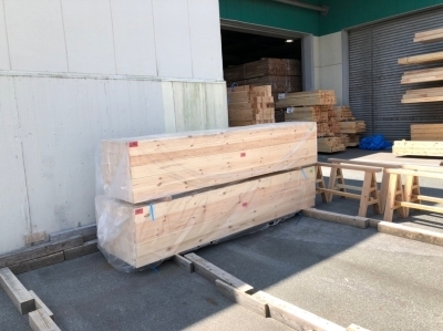 この後、木材はプレカット加工と磨きを行い、上棟当日に搬入されます。