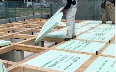 続いては断熱材を隙間なく敷き詰め、床下からの熱をシャットアウト。