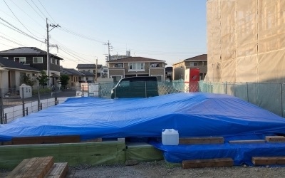 さらに念入りに、分厚い巨大ブルーシートを被せ作業終了。