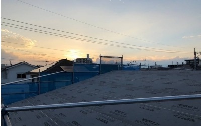 面材が貼り終わった後は1回目の透湿防水シートで綺麗にラッピング。