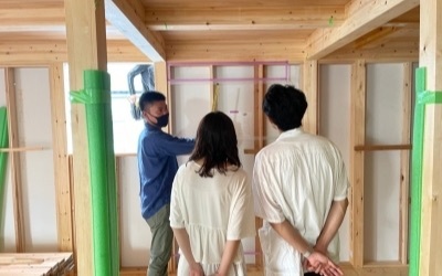 お施主様ご夫妻に見守られながら、工事は順調に推移。