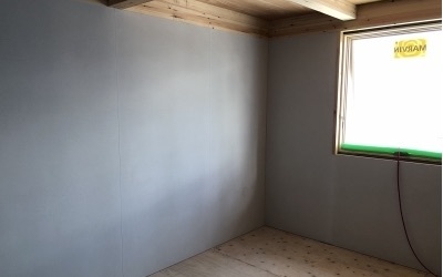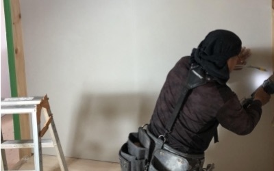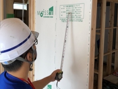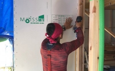 一般的な住宅では下地に石膏ボードを仕込み、表面に壁紙を貼りますが 『モイス』は素材そのままが仕上がりとなる為、慎重に丁寧に時間をかけて。