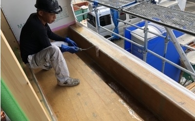 雨漏り等が無いように繊維と樹脂を塗り重ねていきます。
