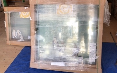 はるばる遠い海を渡って待望の木製サッシが到着しました。