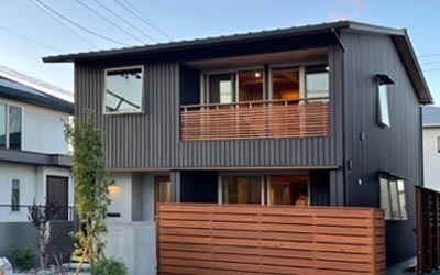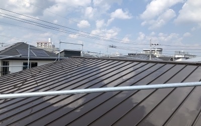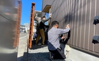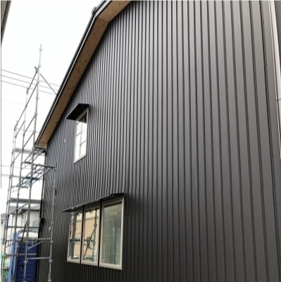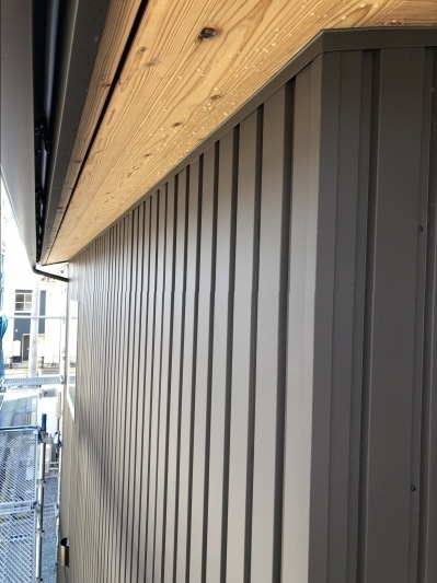 外部では耐久性の高いSGL鋼板を1枚1枚加工しながらドンピシャに納めます。