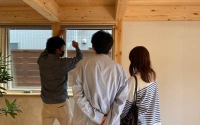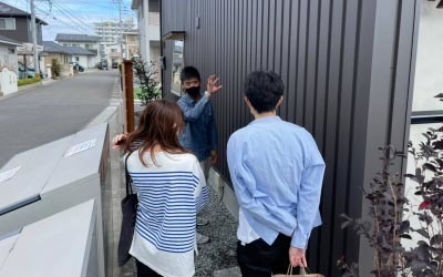 Project担当のKさんが、外回りから住まいのpointを説明していきます。