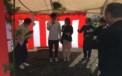 滞りなく式はすすみ、最後にお集まりいただきました皆様と工事の無事を祈念しまして乾杯。