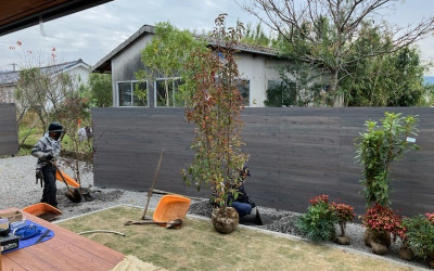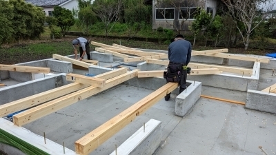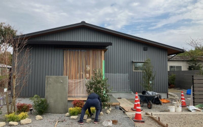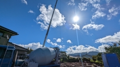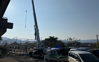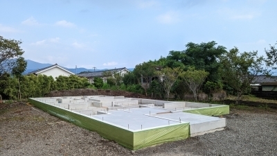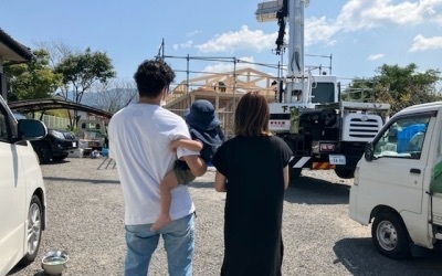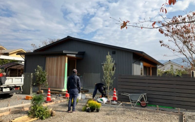 山之口町の自然に溶け込むような美しい家が、間もなく姿を現します。