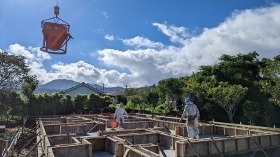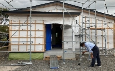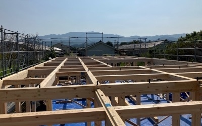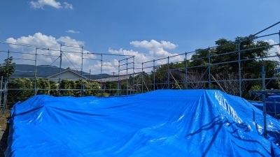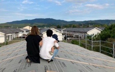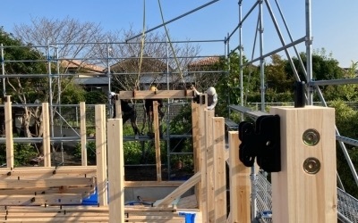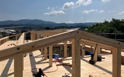 棟上げを終え、台風にも負けずに進む山之口町「one heart」。