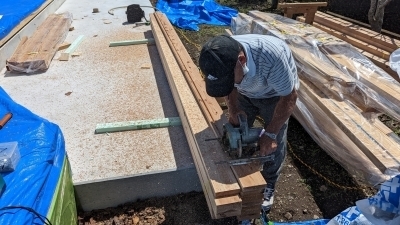 まだまだ残暑の厳しい時期、小休止を挟みながら工事をすすめます。