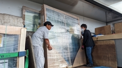 遠い異国の国から、長い時間をかけてようやく「木の窓」がやってきました。