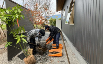 内部・外部共に工事が順調に進む中、ソトを彩る植栽を探しに山へいってきました。