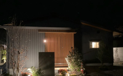 すべての工程が完結したころにはすっかり日も落ちてました🌜 建物・外構・植栽 お披露目に向けた三役揃い踏みです。