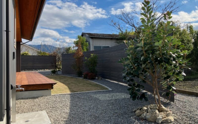 ウッドフェンスの位置や範囲・高さ、カーポート設置の場所、植栽される木々の場所等…