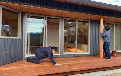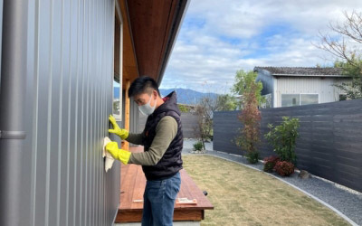 ウッドデッキやガルバ壁も同様に一つ一つ丁寧に磨いていきます。