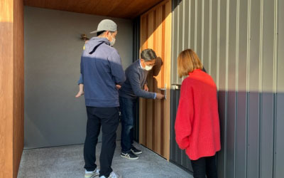 最後に玄関ドアのご説明。 カギの掛け方・開け方を実際に試していただきます。