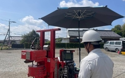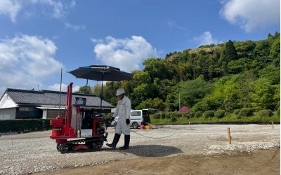 地鎮祭が執り行われたCalm livingは基礎工事着工前の地盤調査を行いました。