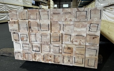 「番付」とは、柱や梁一本一本の特徴を見極め、使用する場所を選定する作業です。