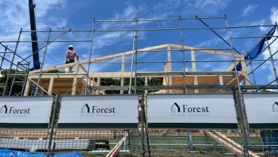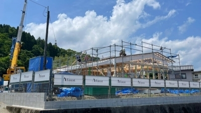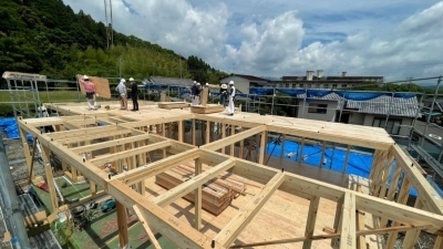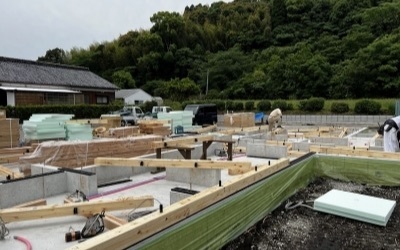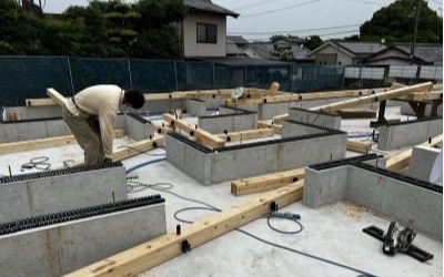 基礎工事を終えたCalm Livingは土台敷きの工程へ。