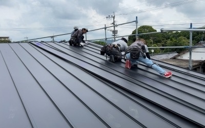 熟練の職人たちが息の合った連携プレーで順調に張り進めていきます。