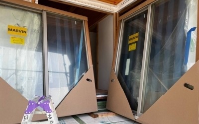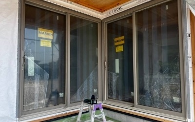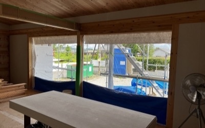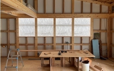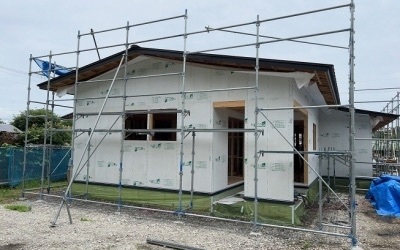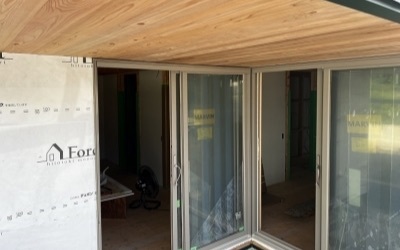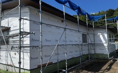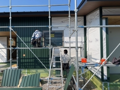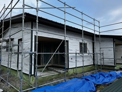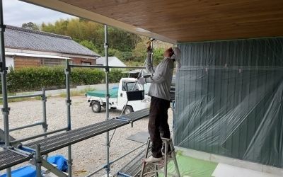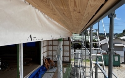 屋根葺きと同時に大工さんにより、外部周りの施工を行います。