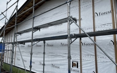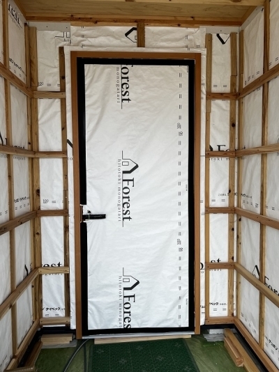 耐力壁を施工してしっかりと防水シートで全面を覆います。