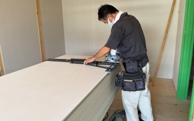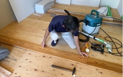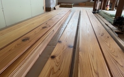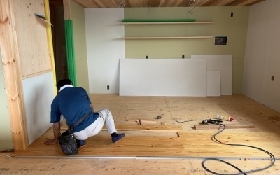 順調に進んでおりますCalm Livingは床材張りの工程へ。