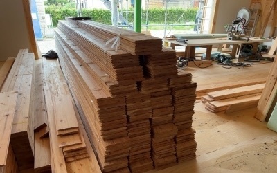 このあと、プレカット加工を行い現場への搬入準備を行います。 磨き上げられた材料たちに会えるのが楽しみです!!