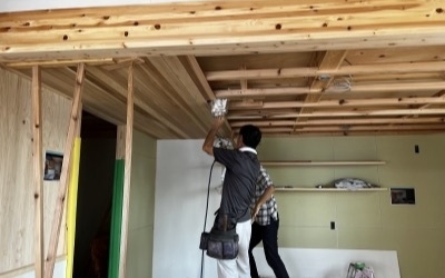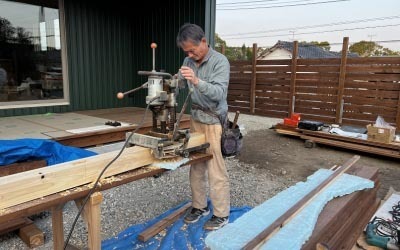 『居心地のよい空間』を作るために柱や梁に向かいます。