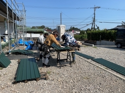長尺のガルバリウム鋼板を一枚ずつ加工して、