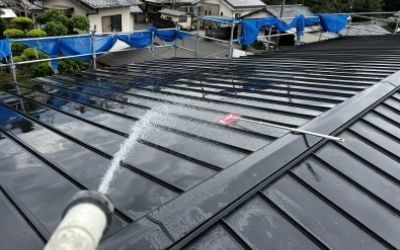 約45坪の広い屋根材を隅々まで点検・清掃を行います。