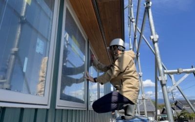 上棟から始まったこれまでの工程を振り返りながら、 波型の凹凸ひとつひとつに、思いを込めて拭き上げていきます。