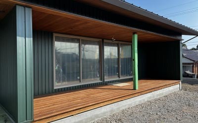 緩やかな屋根勾配の平屋にも相性抜群ですね。
