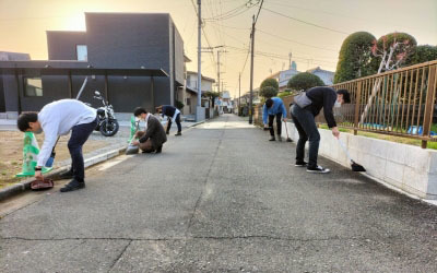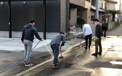 お世話になった近隣の皆様にも感謝をこめて、お家周辺の道路も磨いていきます。