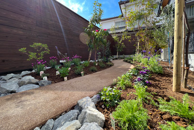 まだ小さなハーブたちの植る小径のあるお庭。 やがて、ハーブも成長してもっと素敵なイングリッシュガーデンへ変わって行くことでしょう。