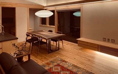 写真から確認できるように床、天井部分には一般的な巾木、廻り縁を設置しません。 シンプルに空間をきれいに見せる効果があり、何より床・天井・壁の取り合いが美しいです!