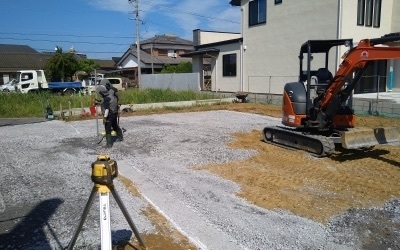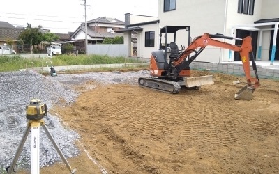 基礎をつくるのに必要な深さまでレベル計測器で確認し掘り起こします。