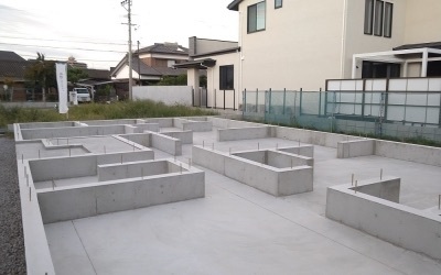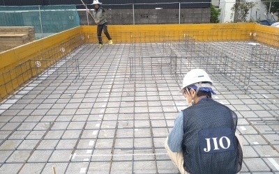 基礎鉄筋組み後は第三者機関JIOによる配筋検査が行われました。